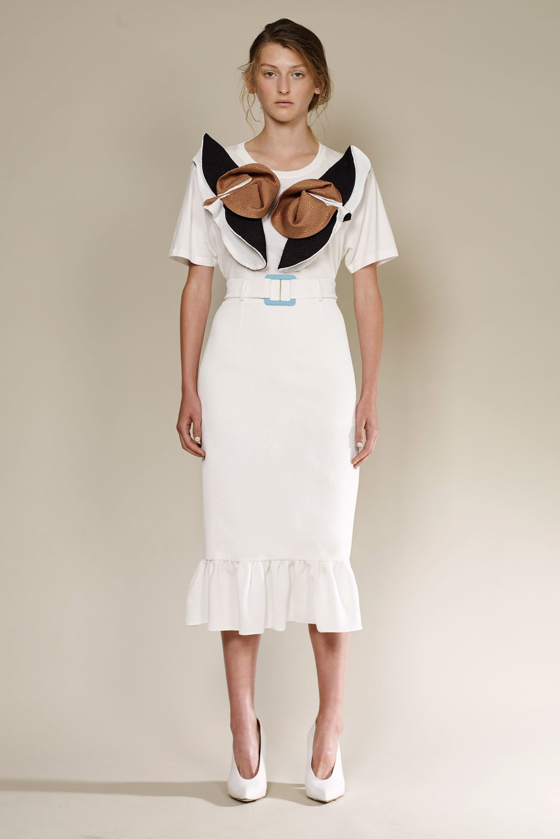 The Agave Flower T-Shirt is an easy top with two sculptural Cerulean, Black and Ivory flowers appliquéd onto the front, inspired by Georgia O'Keeffe's flower paintings.