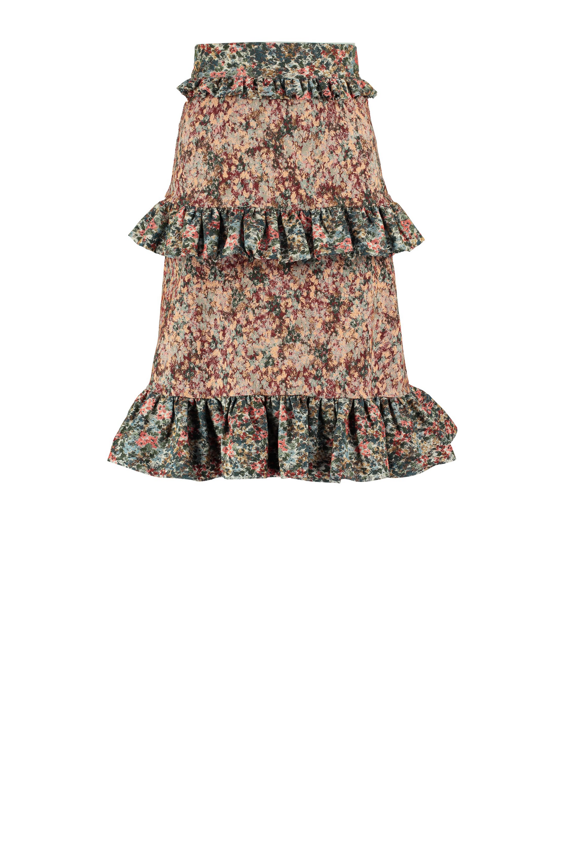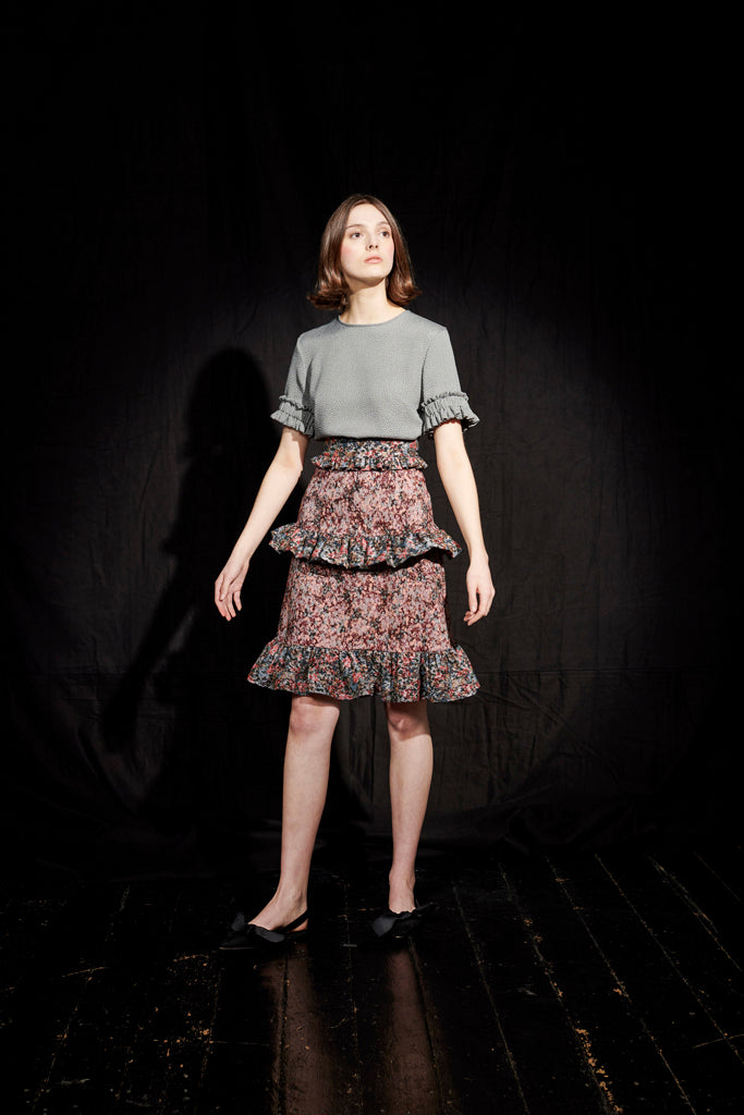 The Artemis Skirt features a high rise waist, lightly flared silhouette and tiered ruffle detail in contrast colour.
