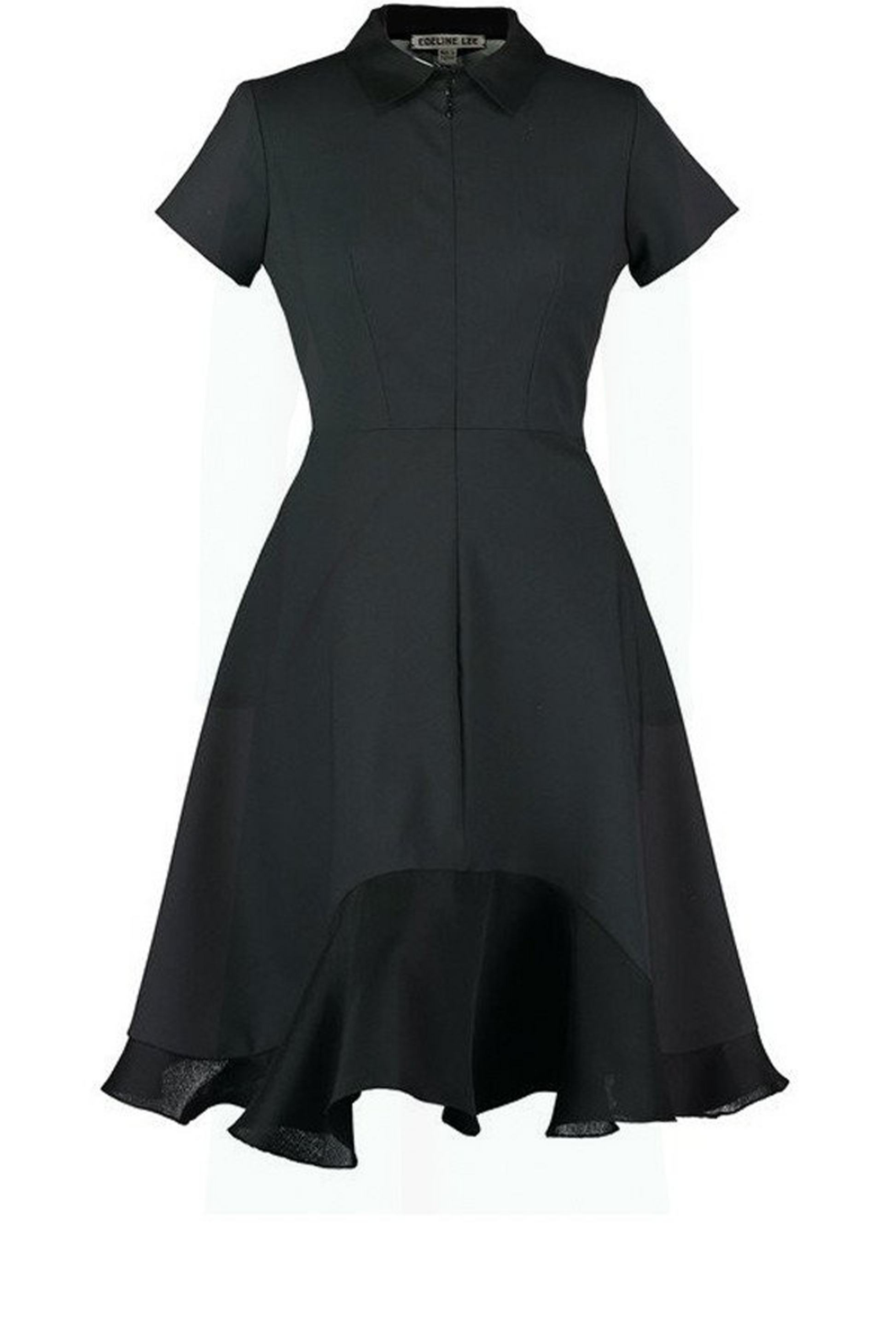 The Balustrade Dress was inspired by the graceful curves of a staircase. This flirty, feminine dress has a crisp collar and a front zip so that the neckline can be opened.