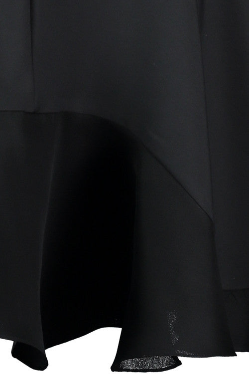 Gabardine Dress with Silk Triple Organdy Gazar Details in Lamp Black