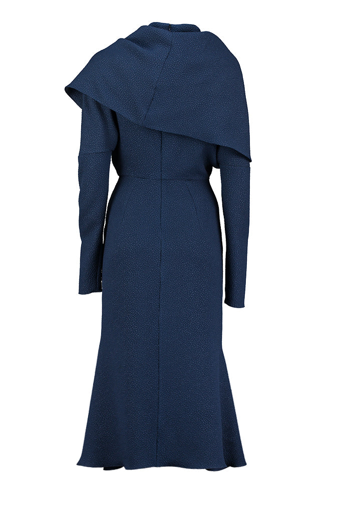 The Benedict Dress works beautifully on a wide range of body types. It is easy and comfortable with a slight stretch, but at the same time sleek and elegant. The Benedict Dress is hand-crafted in England from a from a pebble-textured Flou Bubble Jacquard woven in Italy.