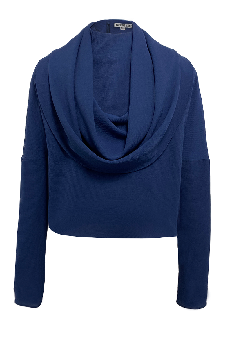 The Benedict Top features a loose fitting top with long fitted sleeves and an effortless cowl drape at the neck which can be worn gathered high up on the shoulder or can be alternatively worn draped over the arms.