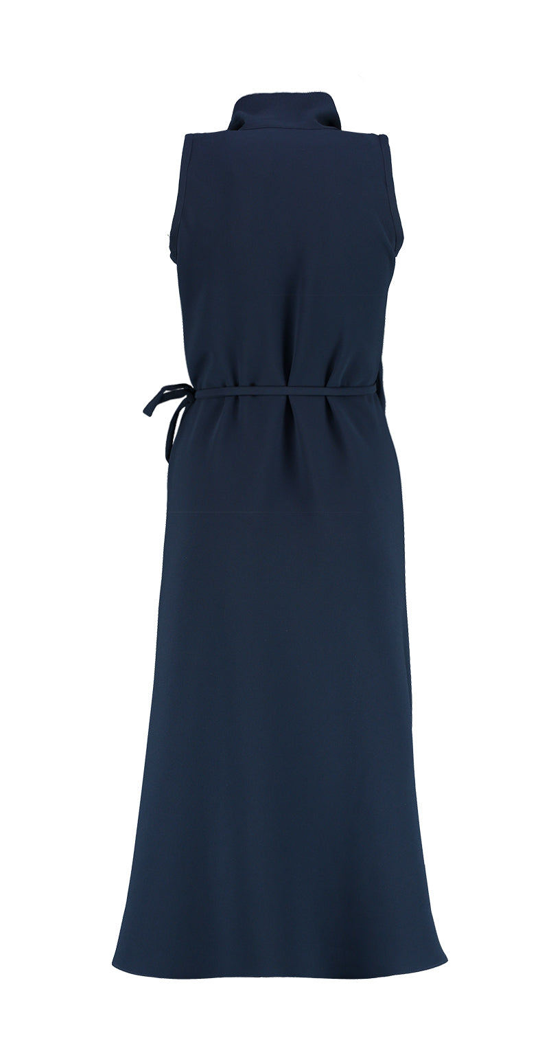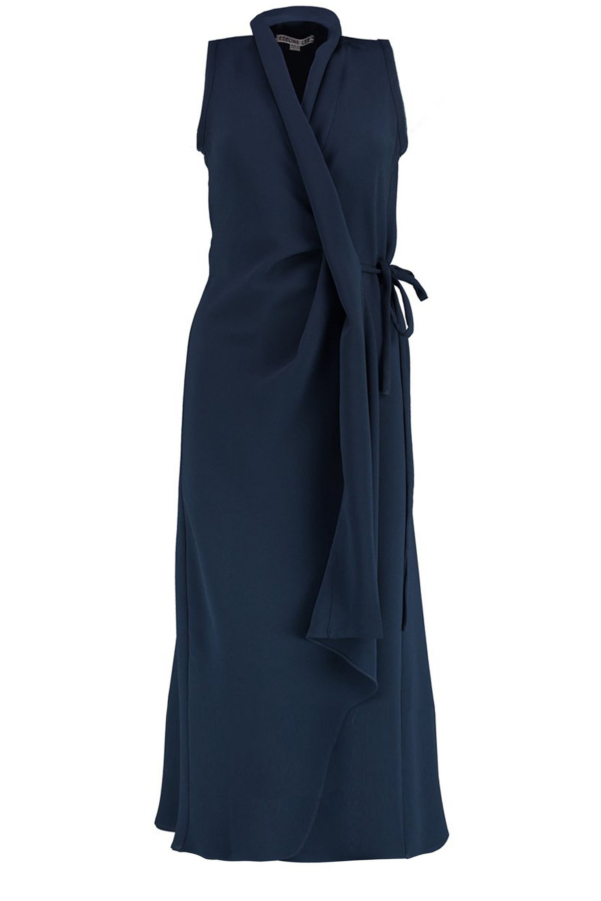 The Braid Dress is an elegant wrap dress which can be fastened to be fitted either tightly or loosely at the waist. The dress features asymmetrical pleated details, is sleeveless with a slight halter open neckline and finishes just below the knee.