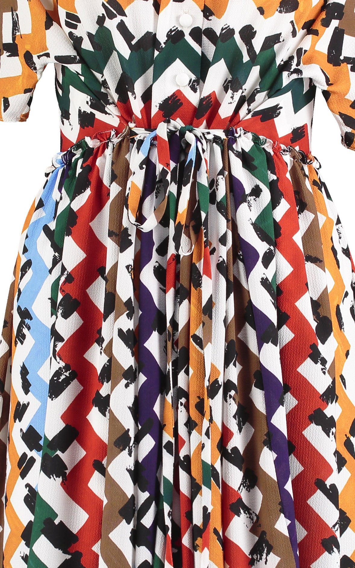Midi Shirtdress with Ruched Details and Contrast Buttons