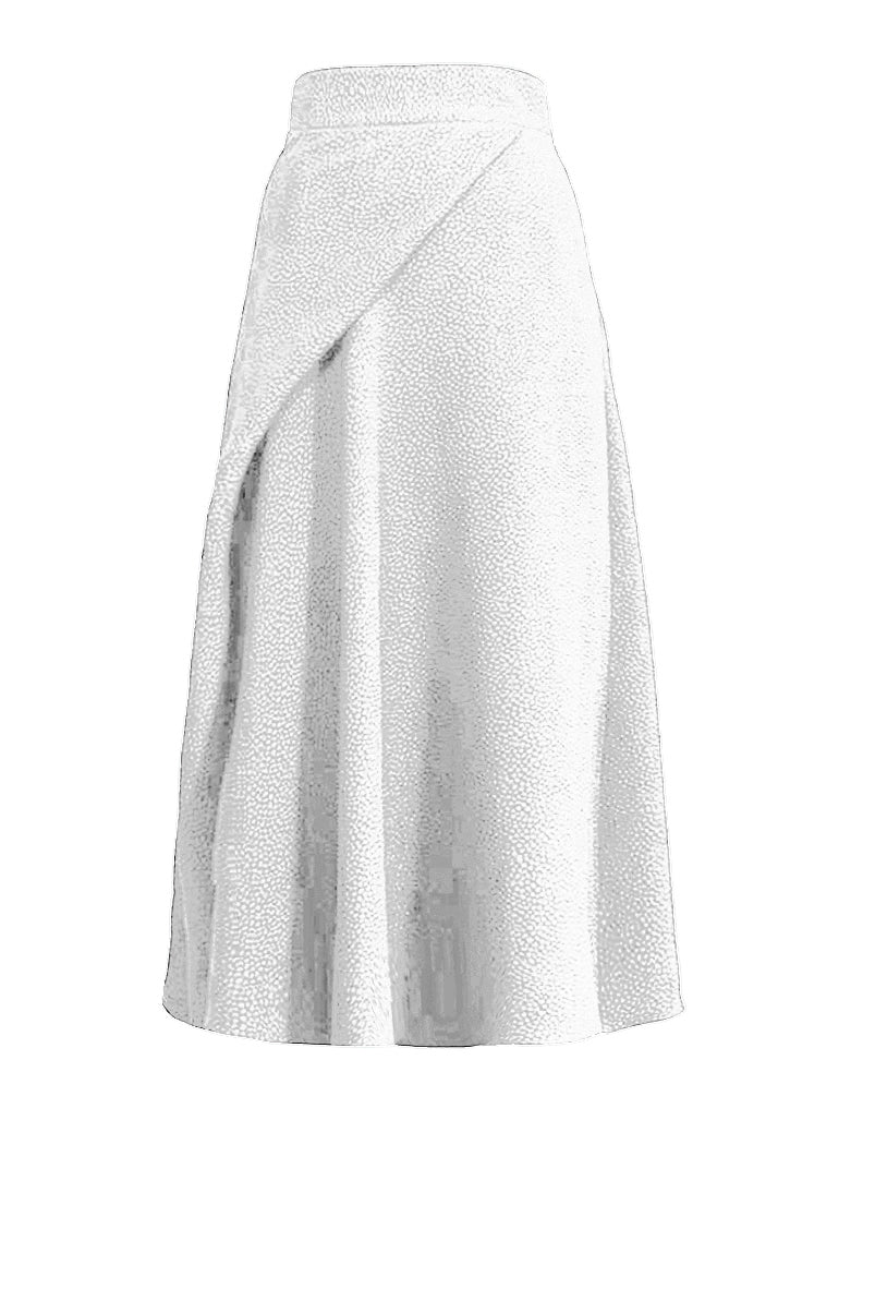 The Fatale Midi Skirt features an asymmetrical deep pleat at the front waistline flowing down into a gently flared skirt.