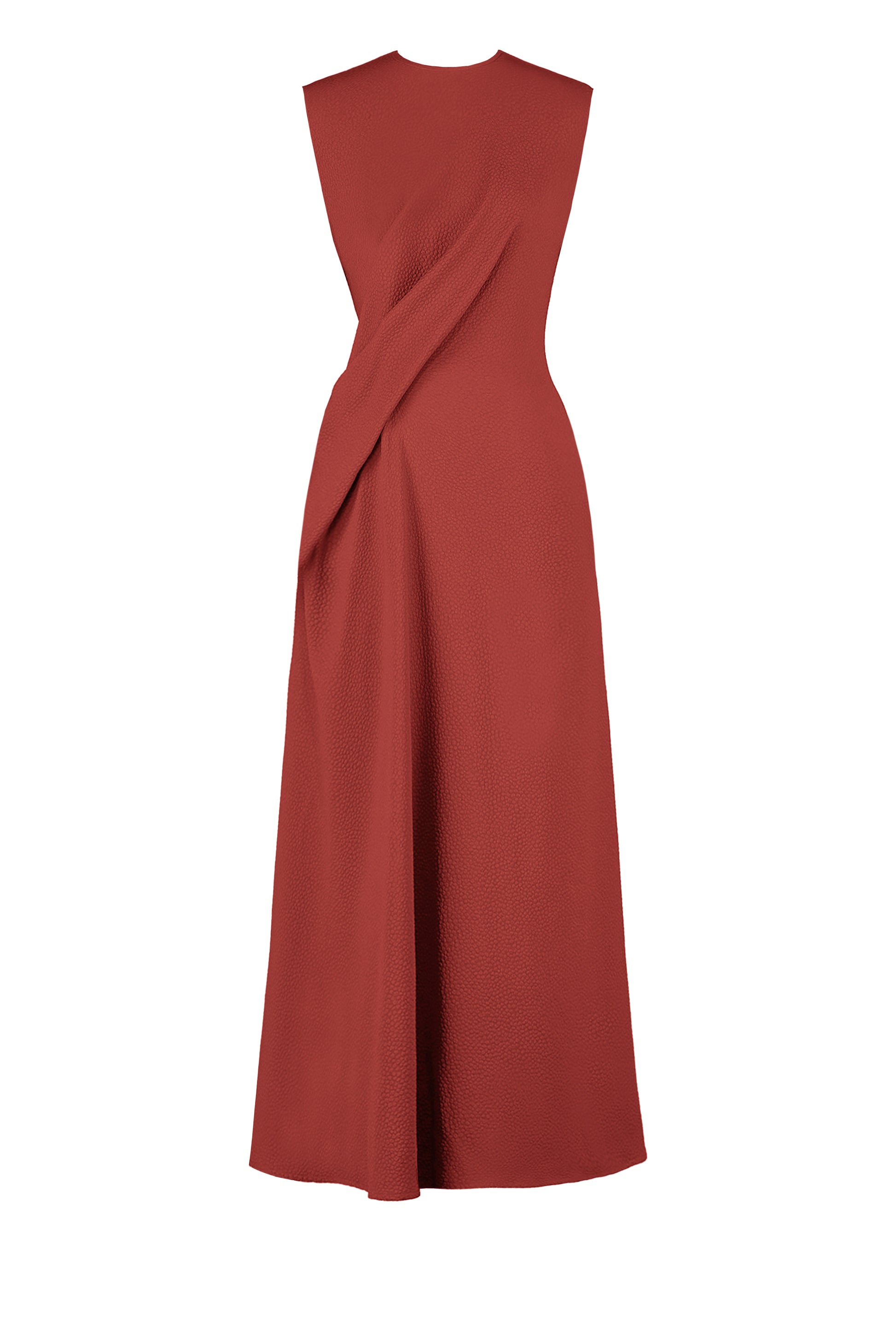 The Finial Dress is crafted in England from a pebble-textured Flou Bubble Jacquard woven in Italy.