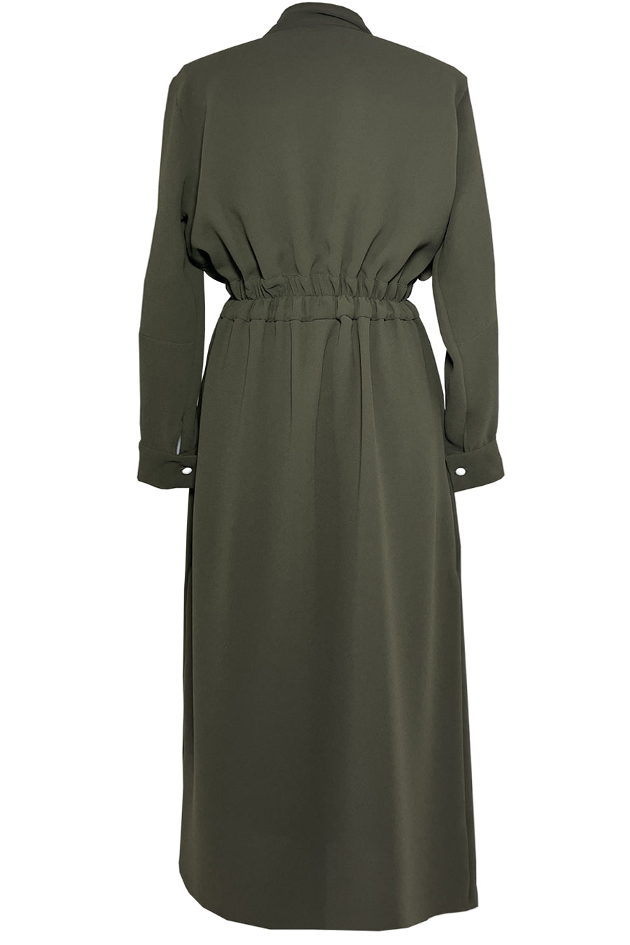 Drape Wrap Neck Shirtdress with Elasticated Waist and Button Details