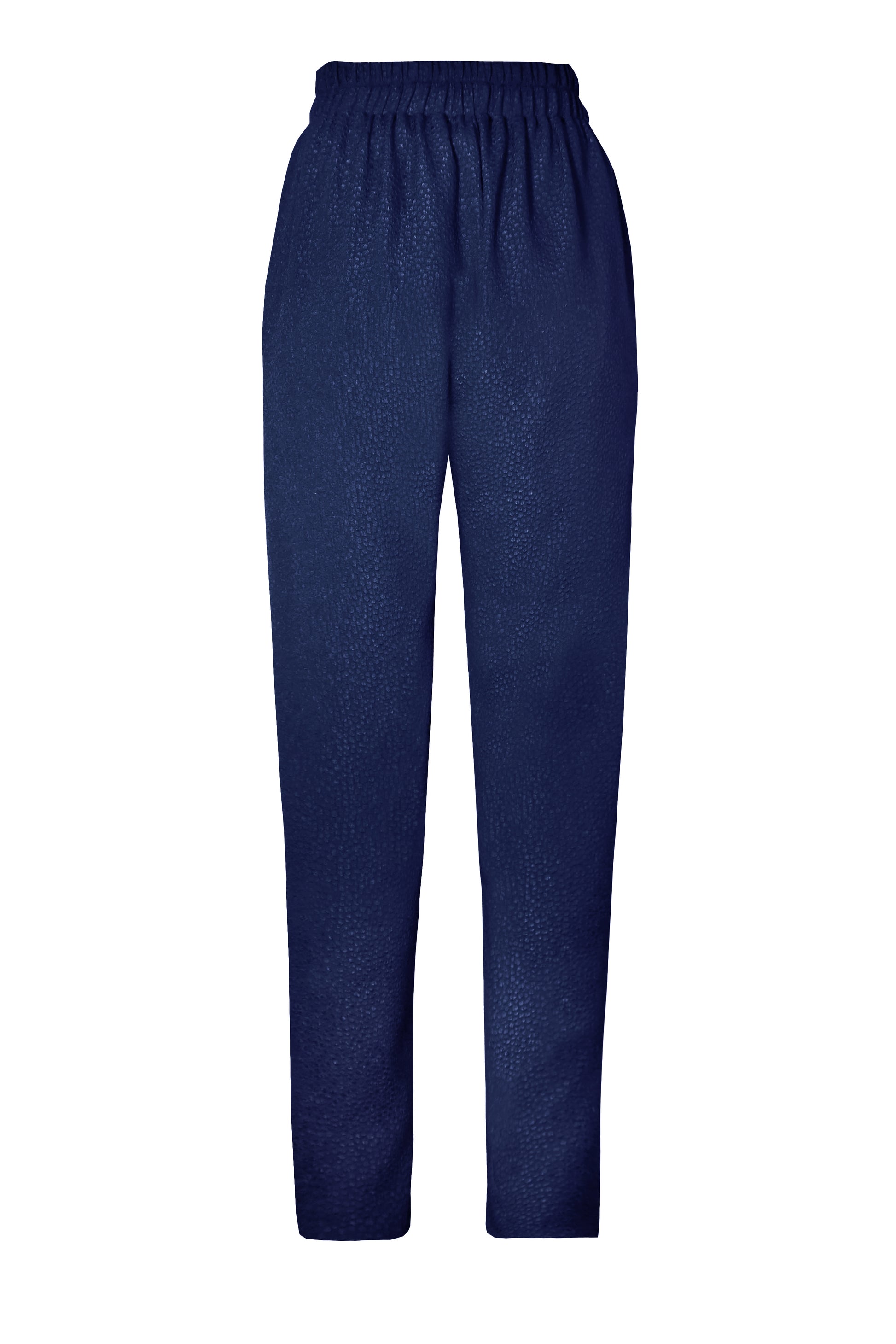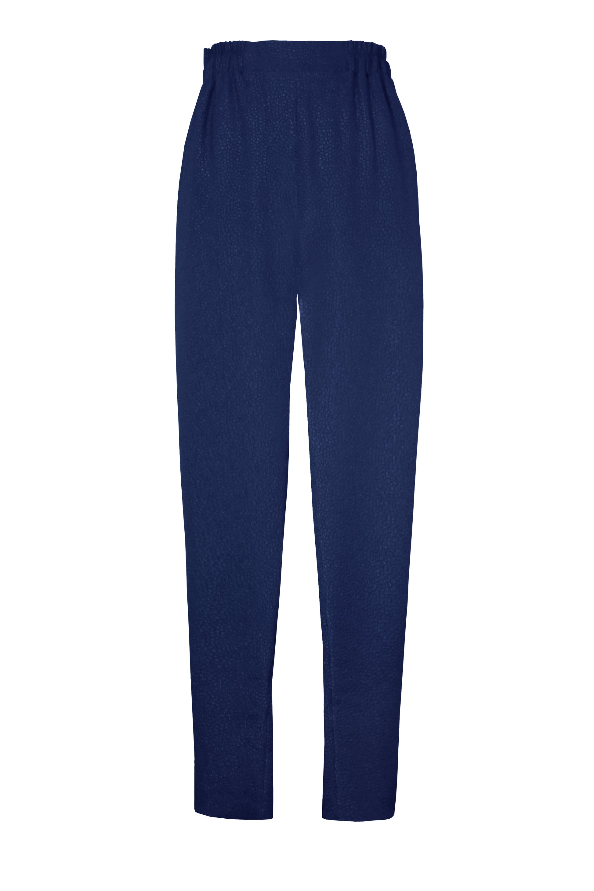 The Iteratio Trouser features an elasticated waist with a flat panel at the front and side pockets. The Iteratio Trouser features our signature hand-covered button details, and has a universally flattering, easy fit, narrowing slightly at the ankles.