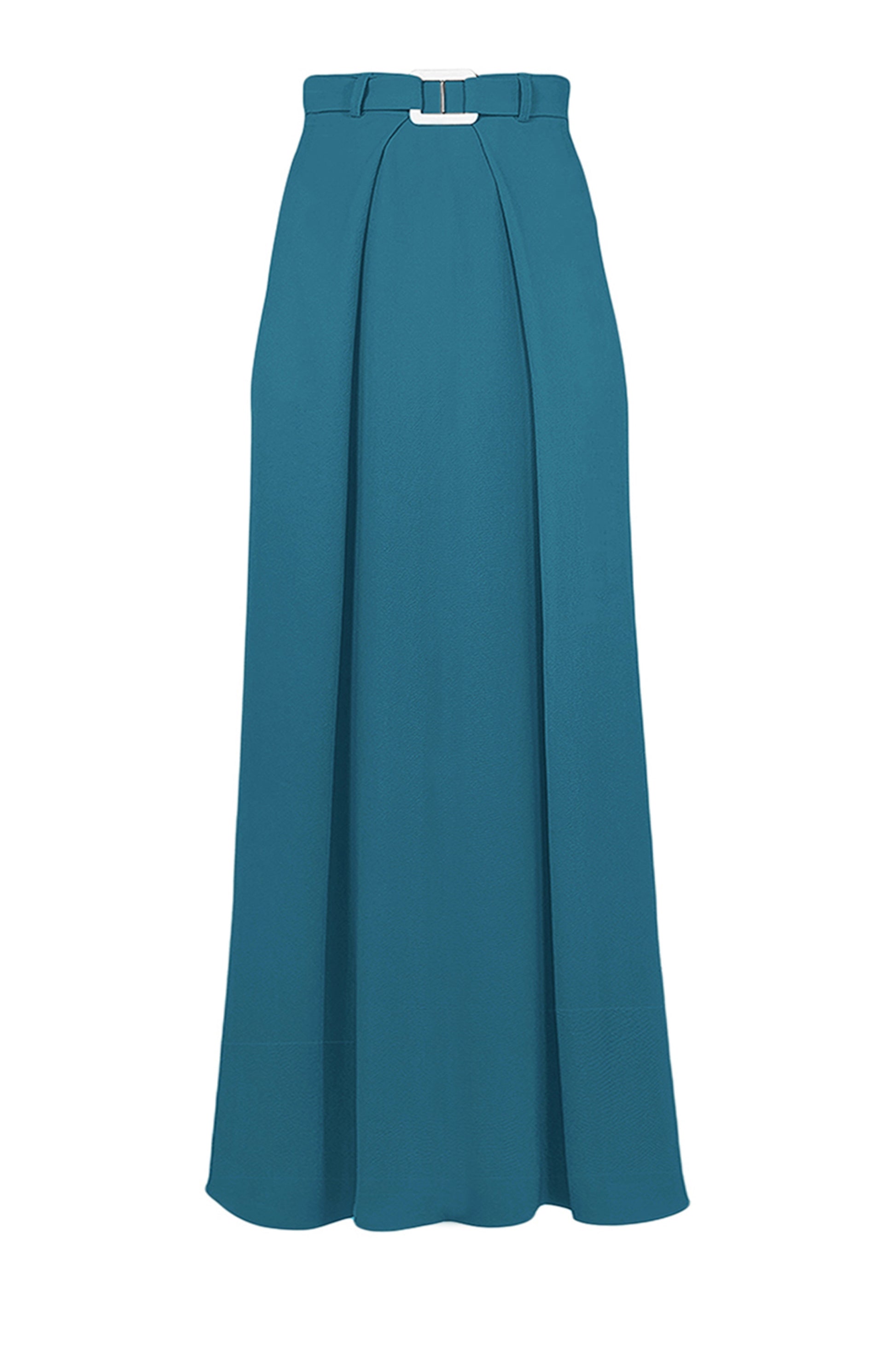 The Juno Belted Skirt is a high waisted and elegantly cut in a tailored menswear style. They feature a deep inverted pleat at the front waistline and fall at a cropped ankle length.