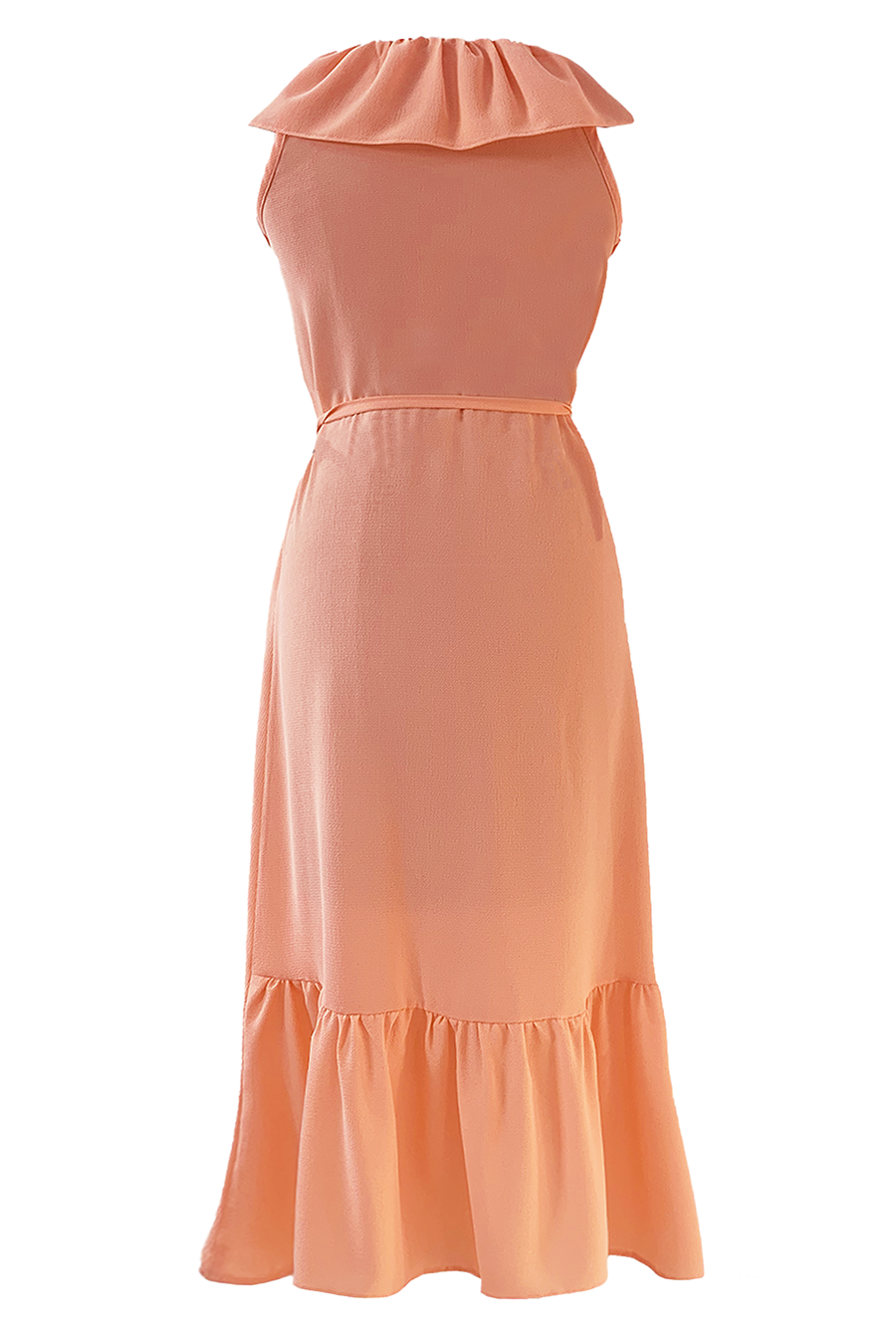 Sleeveless Drape Neck Ruffled Midi Wrap Dress