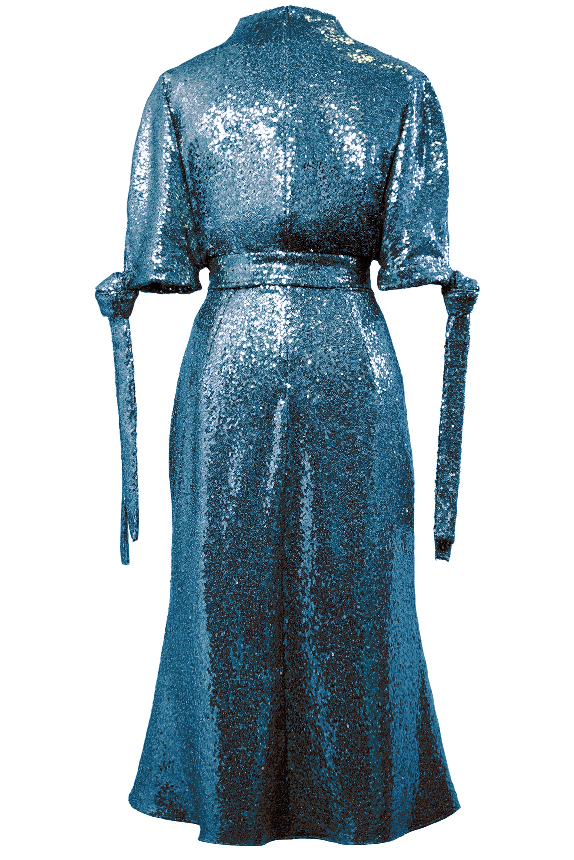 Wear with our Triangle Court Shoe for a polished and elegant look. The Pedernal Dress is hand-crafted in England from a pebble-textured Flou Bubble Jacquard woven in Italy. Also available in Burgundy, Navy or Gold Sequin Cluster Net.