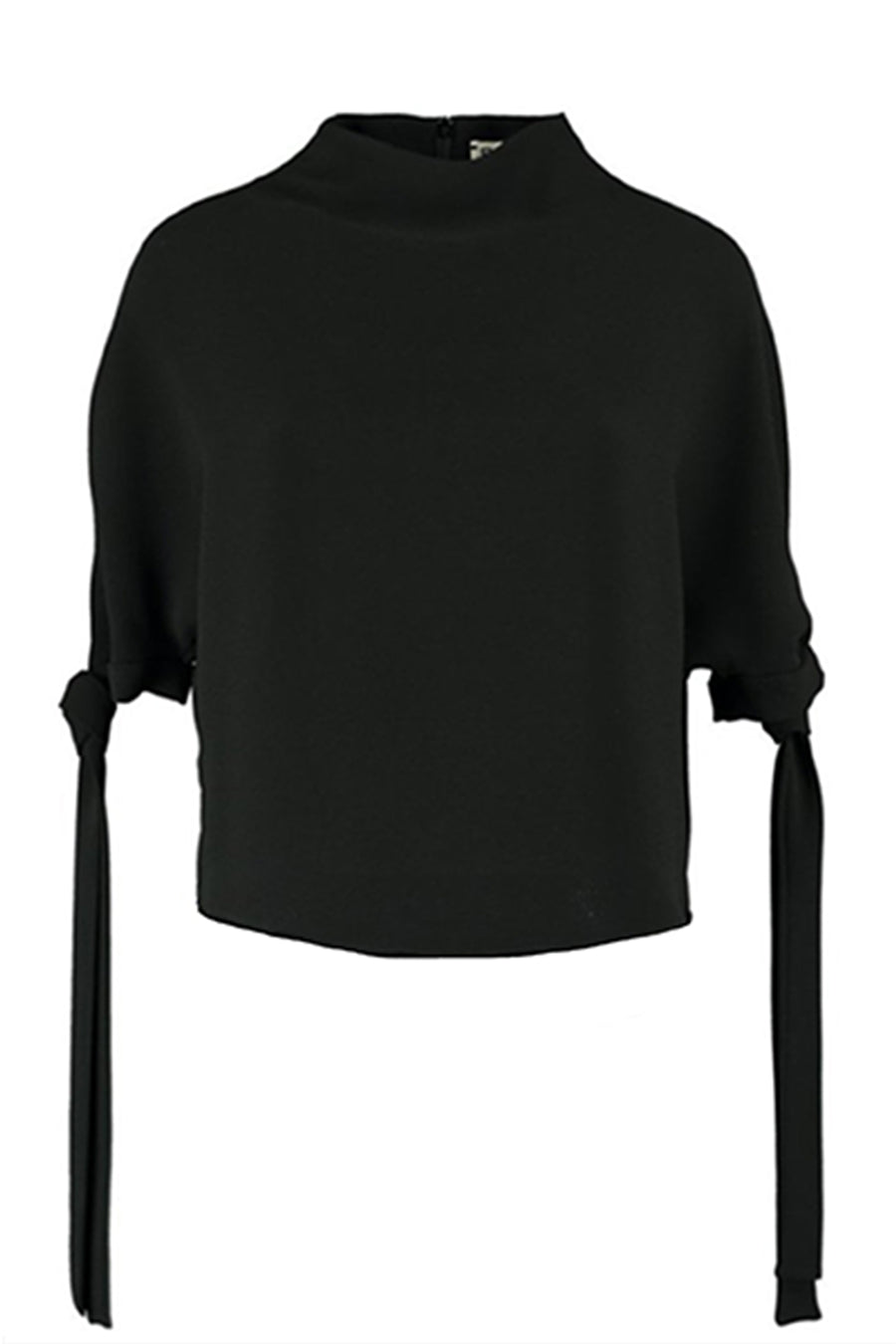 Elegant Top with High Neck and Tie Fastening at Sleeves