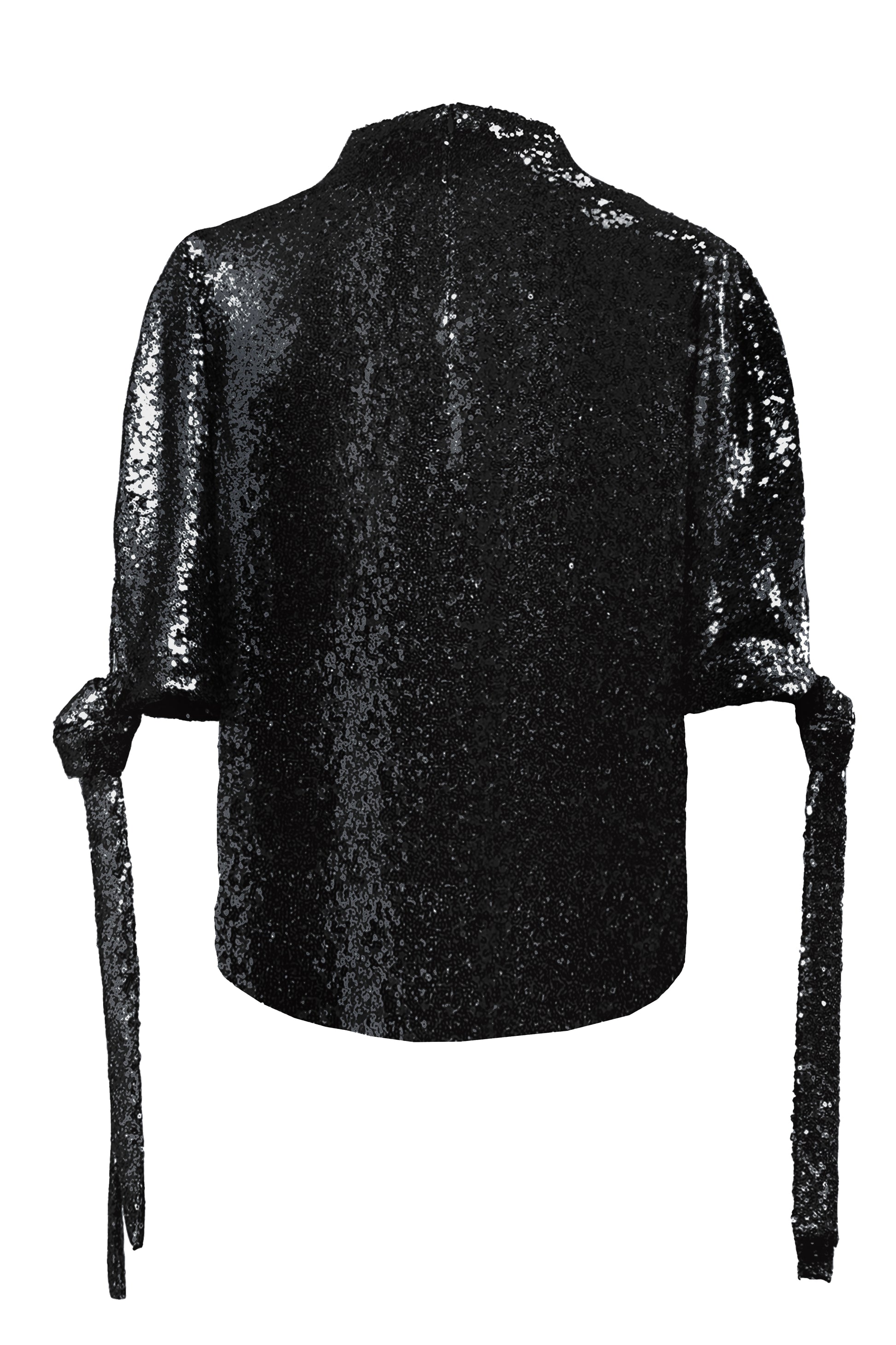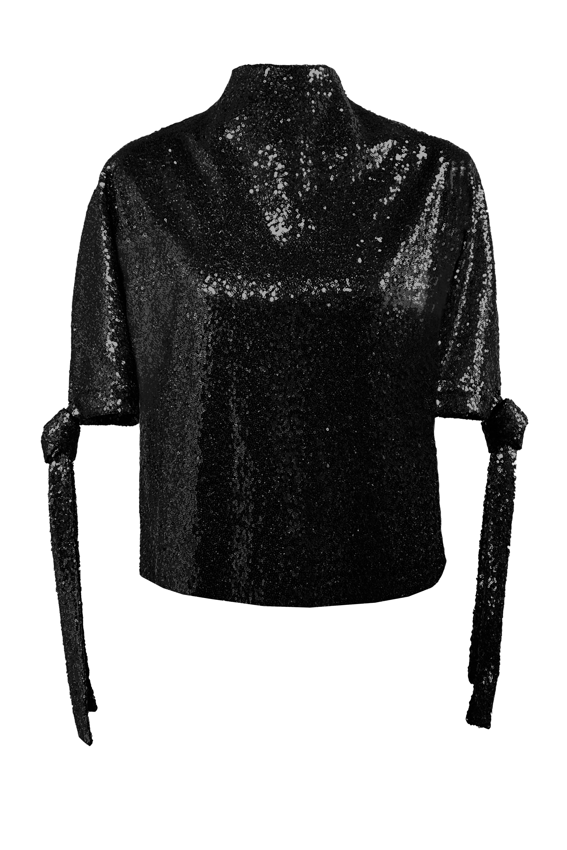 Elegant Top with High Neck and Tie Fastening at Sleeves