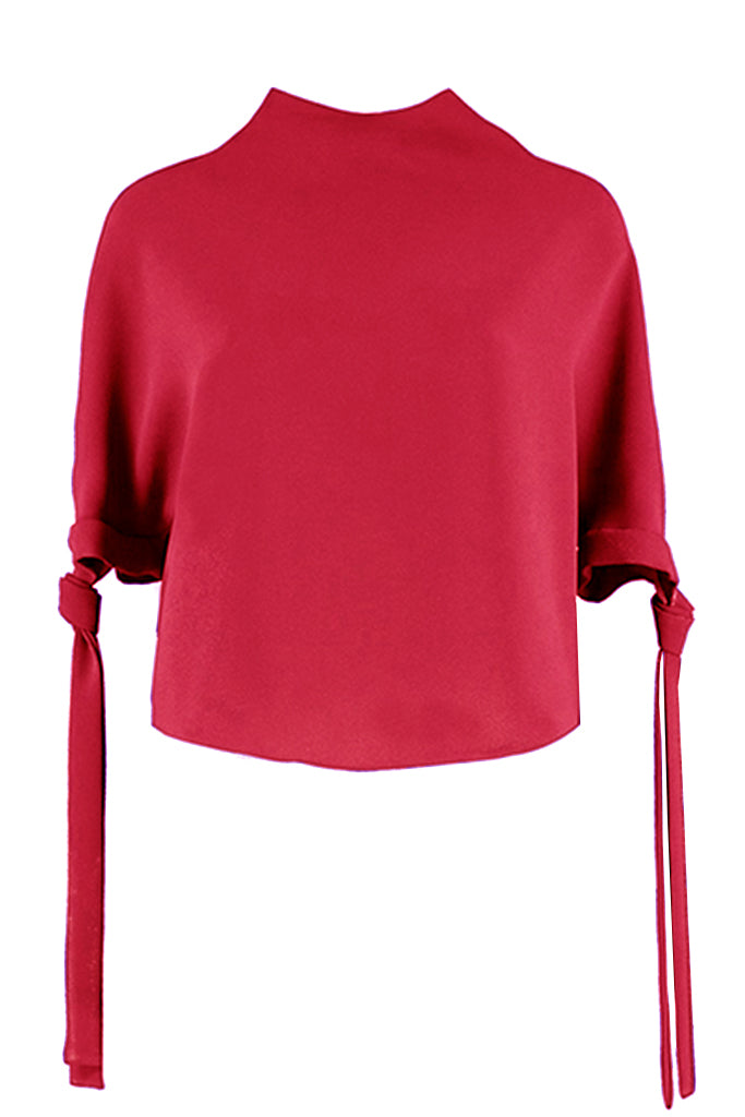 Elegant Top with High Neck and Tie Fastening at Sleeves