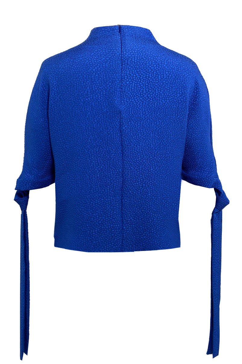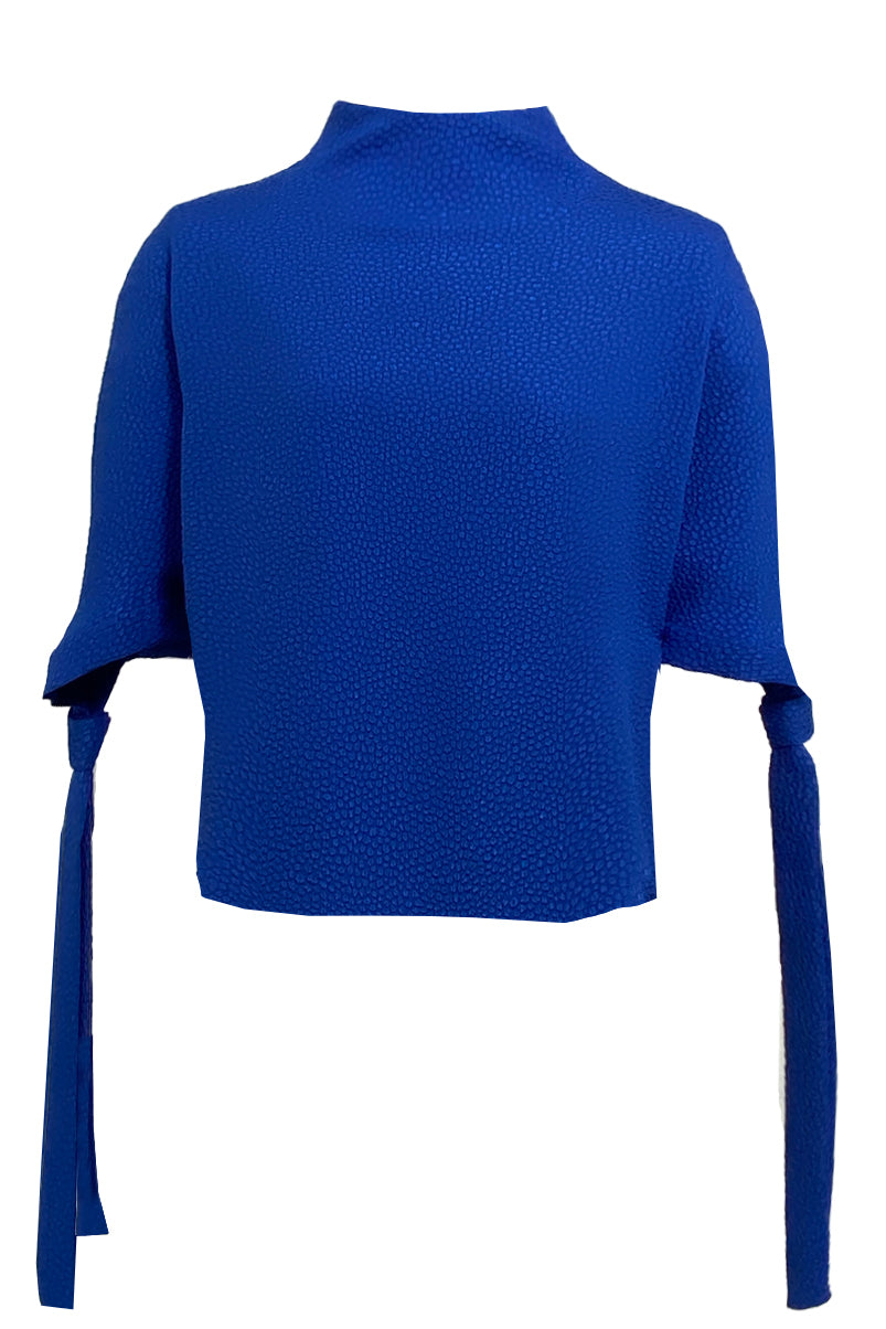 Elegant Top with High Neck and Tie Fastening at Sleeves
