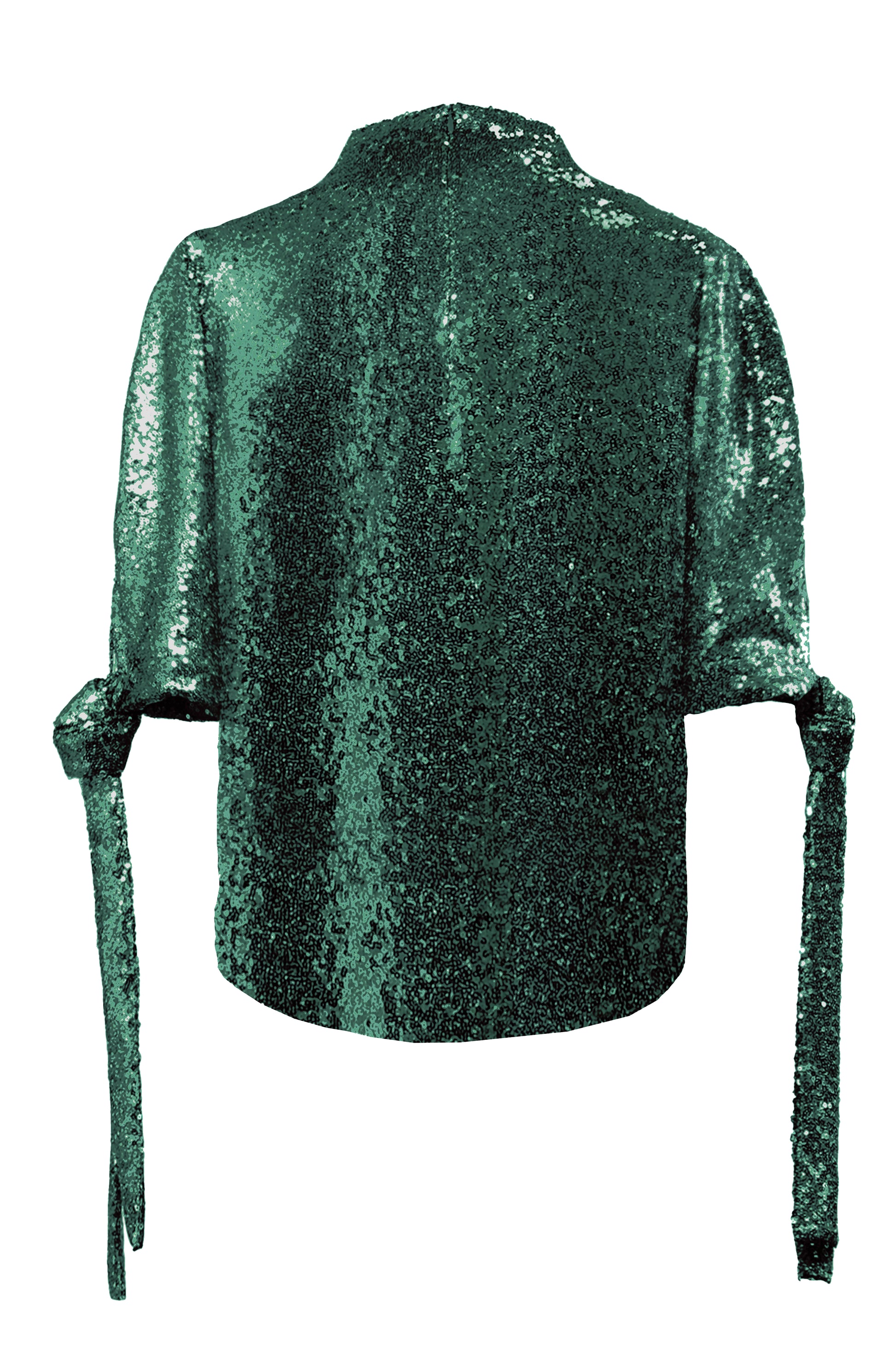 Elegant Top with High Neck and Tie Fastening at Sleeves