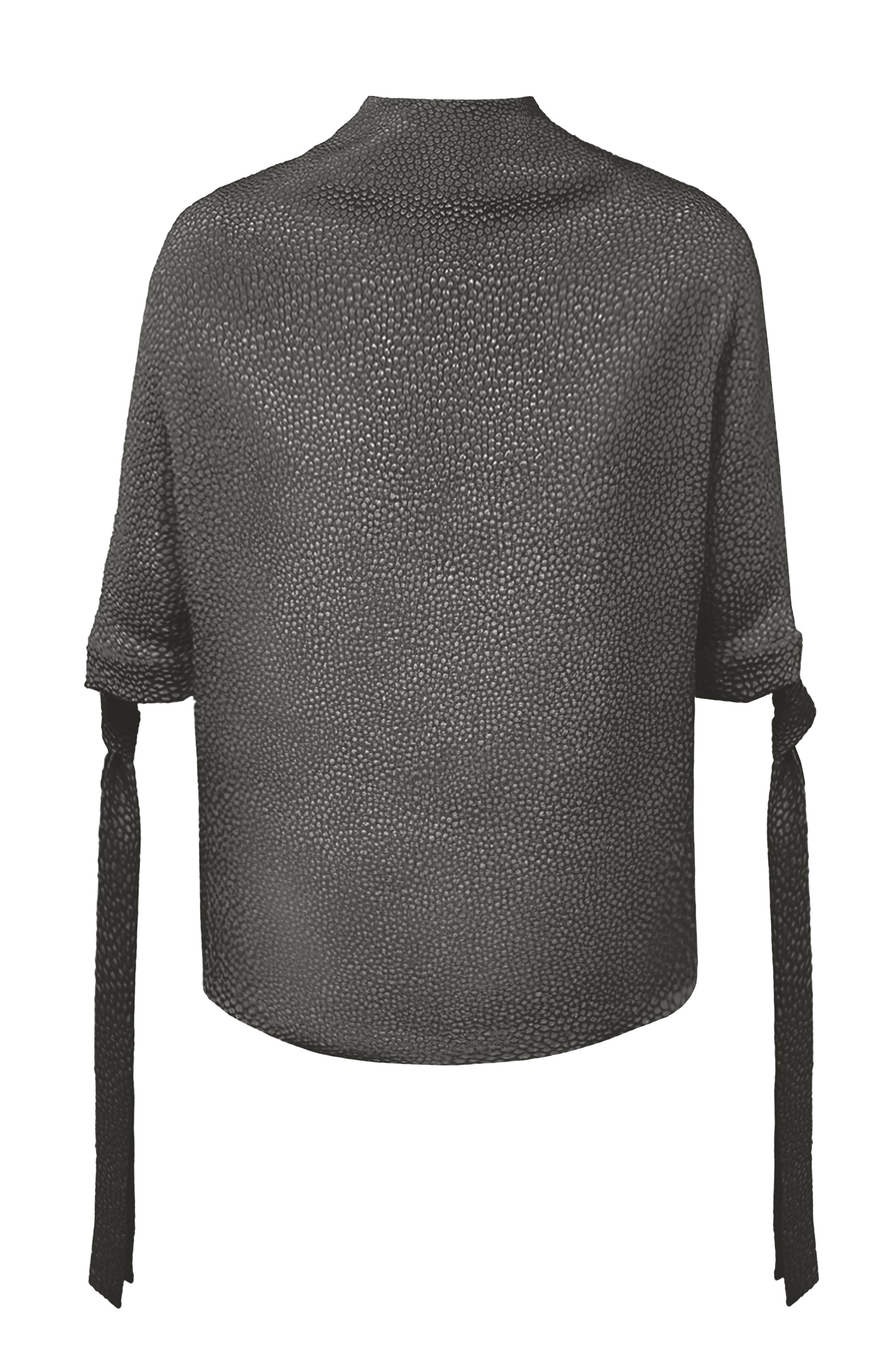 Elegant Top with High Neck and Tie Fastening at Sleeves