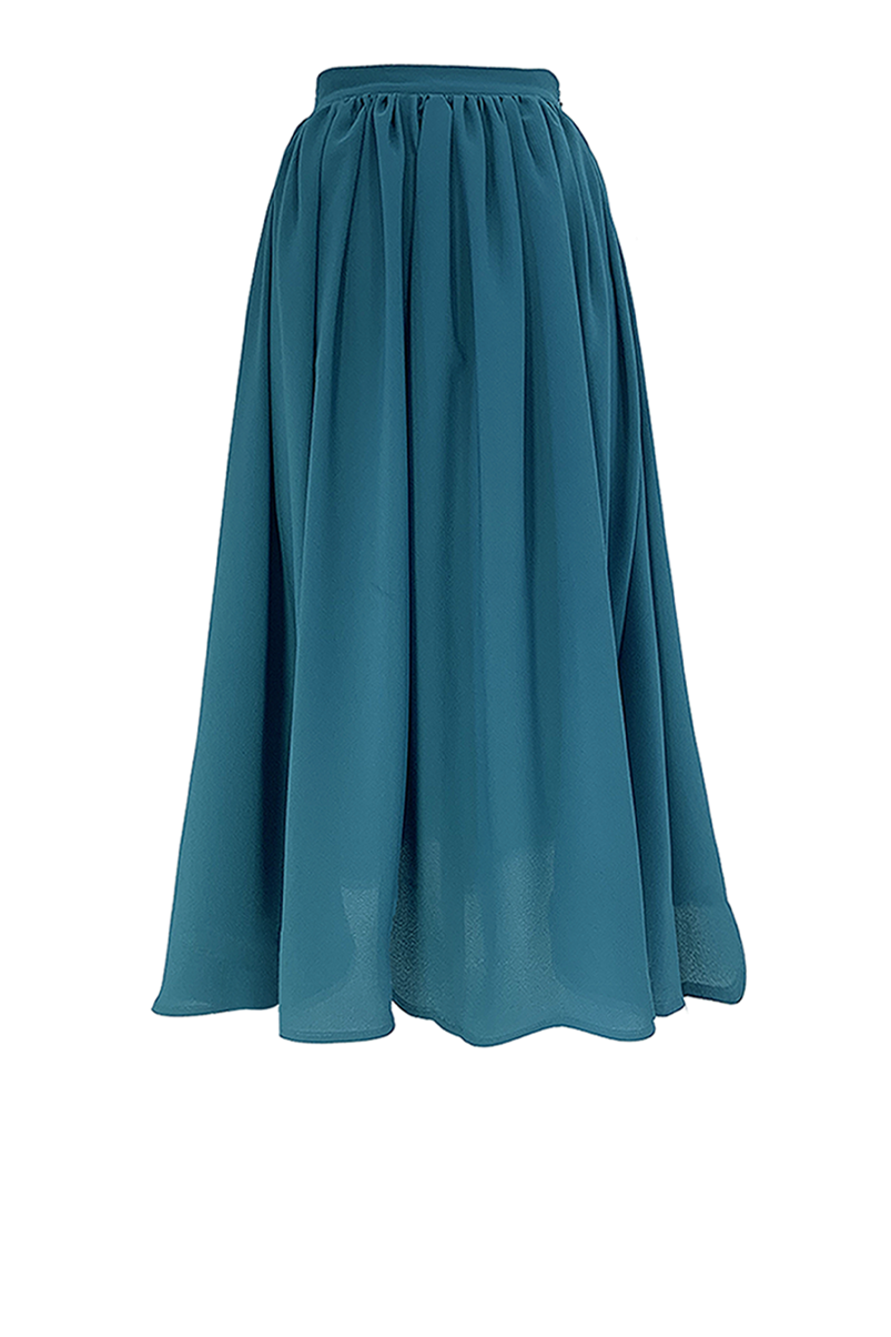 The Pluto Skirt is super light but features generous amounts of fabric. It has a midi length and features deep ruching all around from a fitted waistband. Easy to style for work or play.