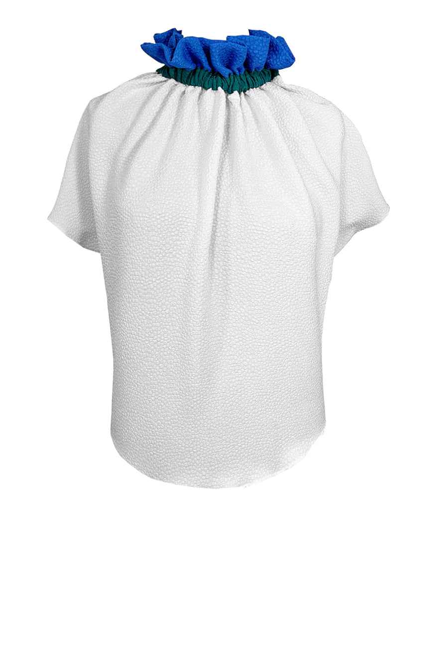 Our best-selling Ruff Blouse features an elasticated ruff neckline with draped short sleeves and a curved hem. This top is extremely comfortable, yet feminine and striking for any occasion.