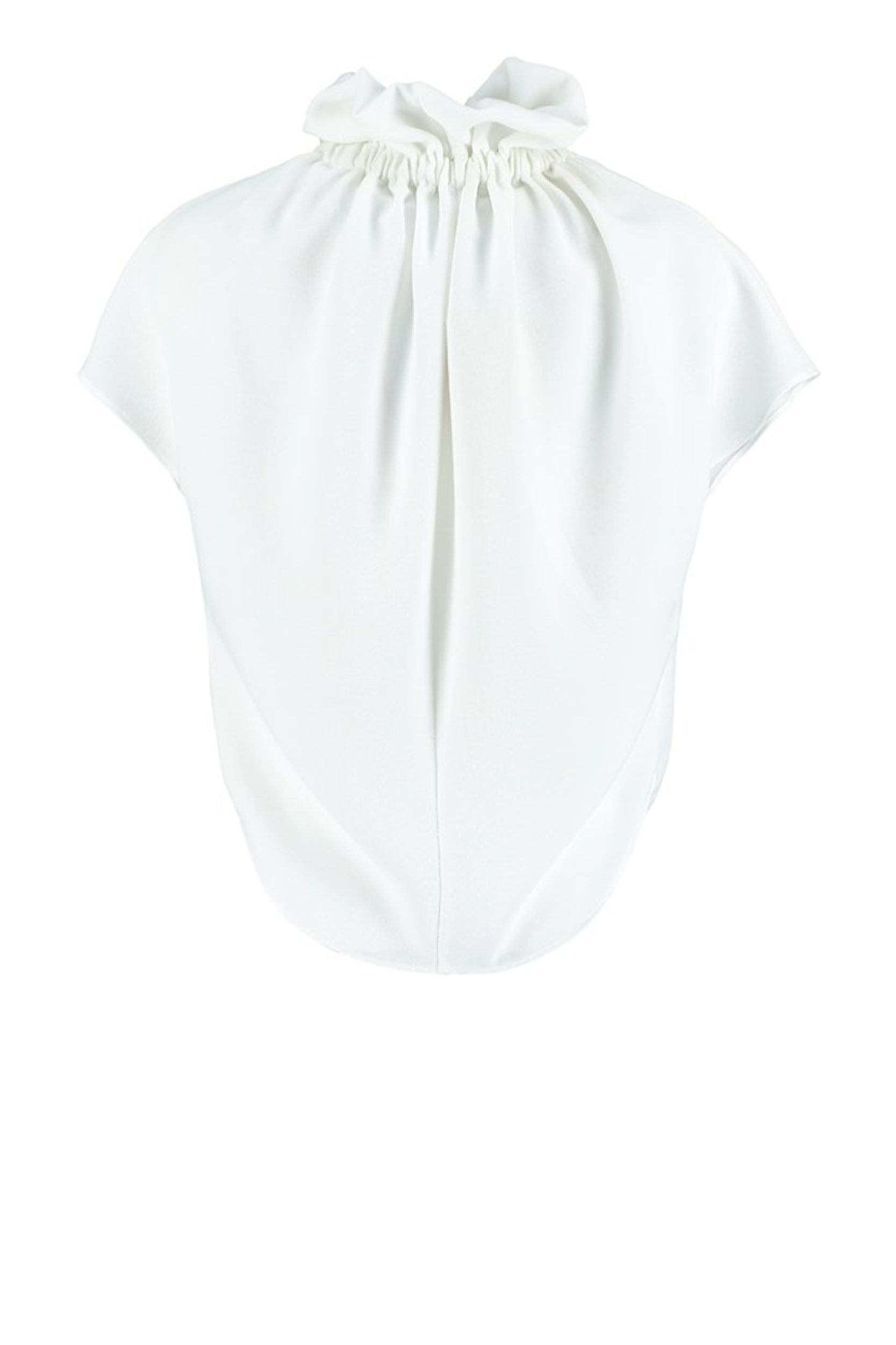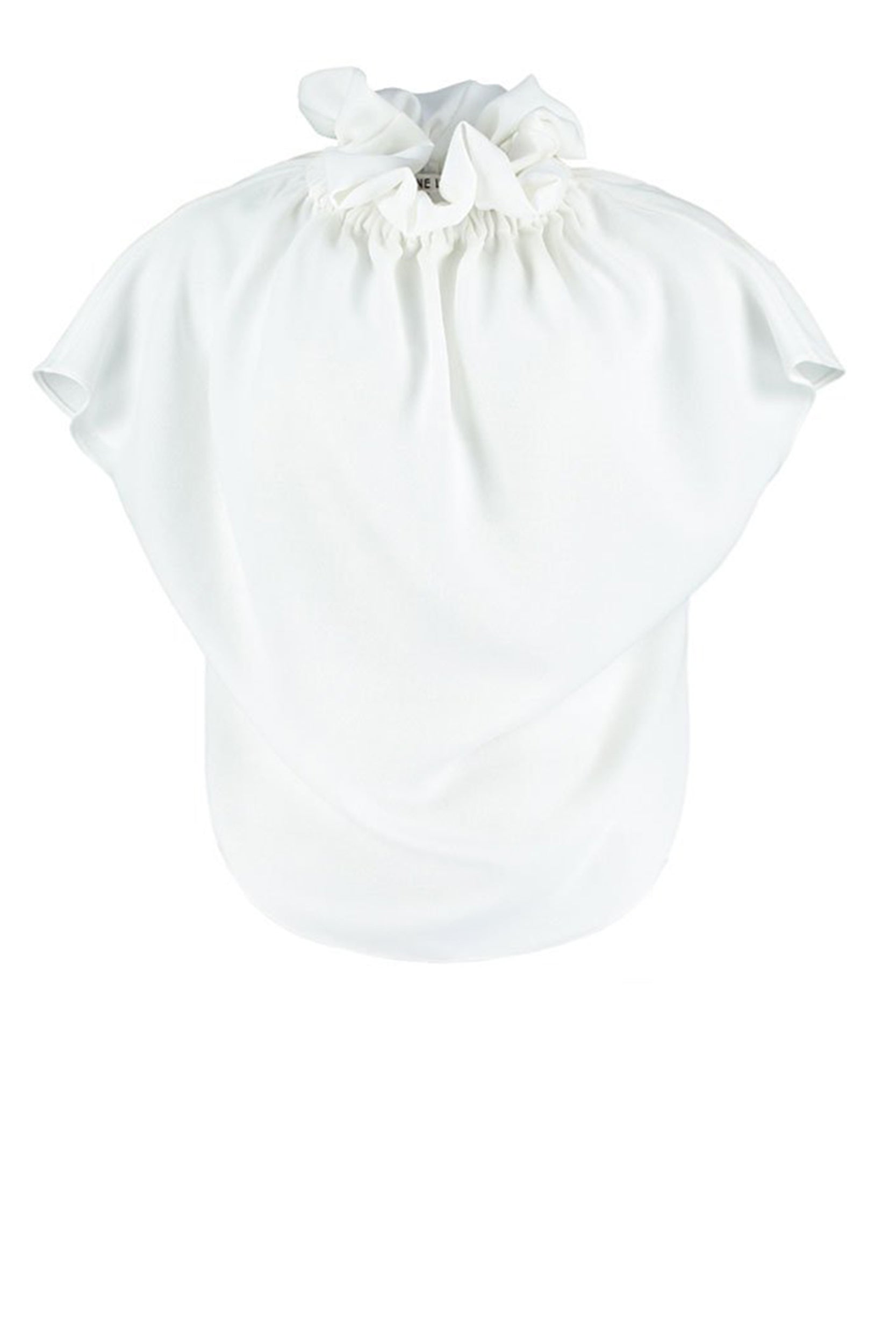 The Ruff Blouse features an elasticated ruff neckline with draped short sleeves and a curved hem. This top is extremely comfortable, yet feminine and striking for any occasion.