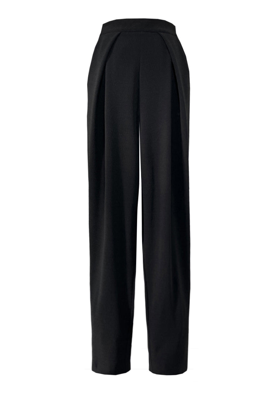 The Simple Plait Trouser is a high waisted, elegantly cut pair of trousers with a loose fit. These trousers feature a snugly fitted waist, deep pleats at the front waistline, pockets at hip and welt pockets at back.