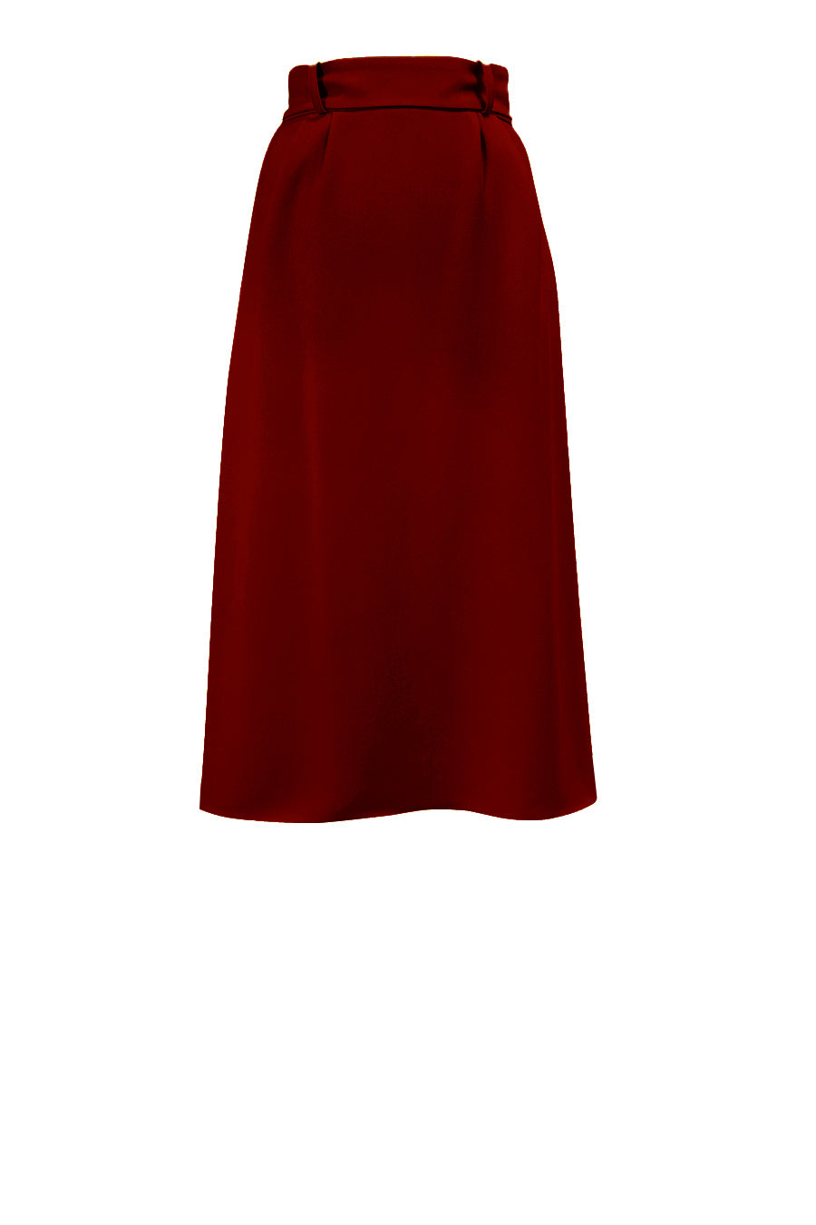 The Telluride Skirt features a high rise waist, front button placket, contrast covered buttons and a contrast buckle waist belt. The skirt has pleats at the waist and a flared silhouette.