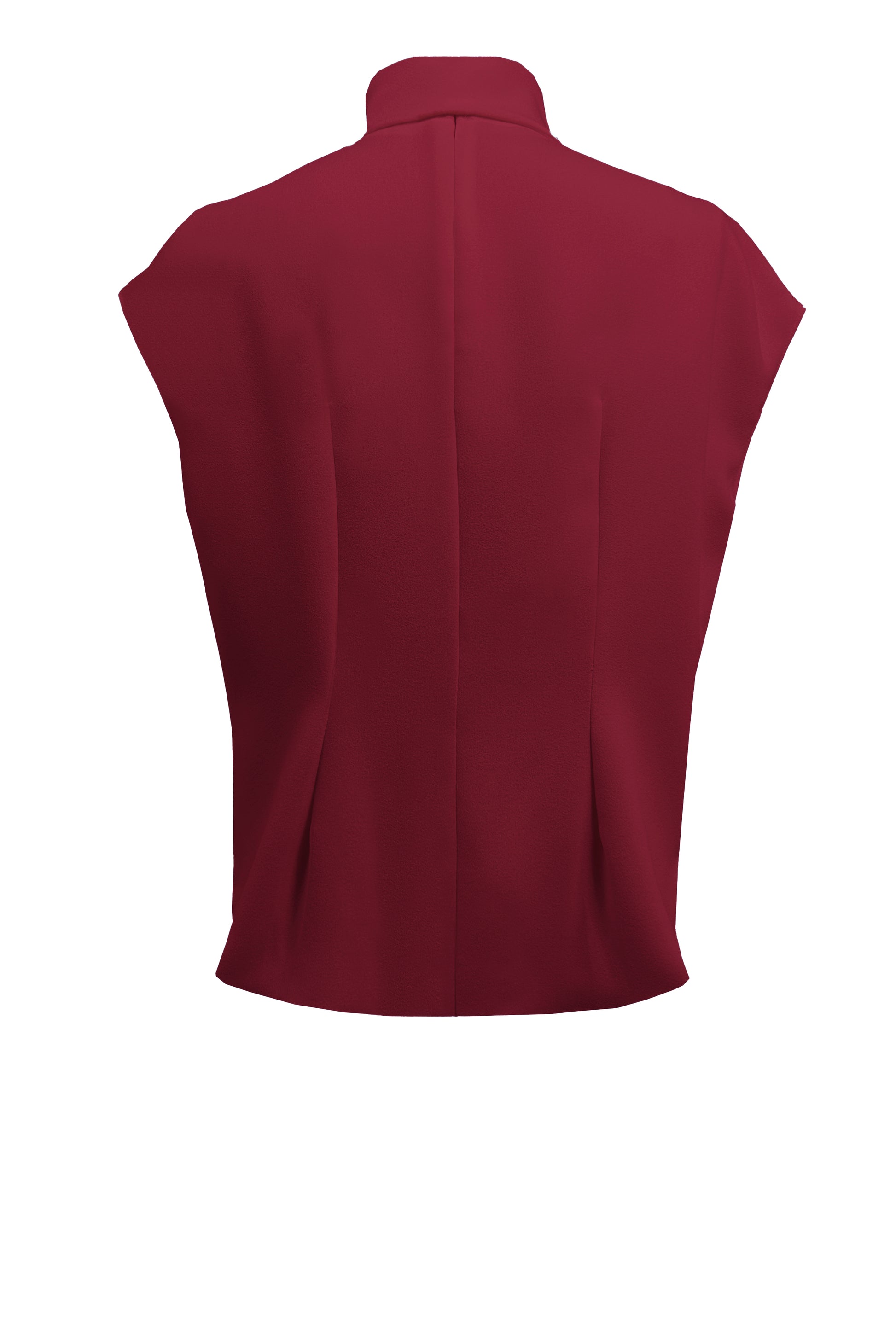 The Tie Neck Blouse has a slightly oversized fit and features a tailored turtleneck and a long scarf at the neck that can be tied into a graceful bow. The blouse has delicate dart details at the shoulder and waistline and armholes that drape into a slightly capped sleeve.