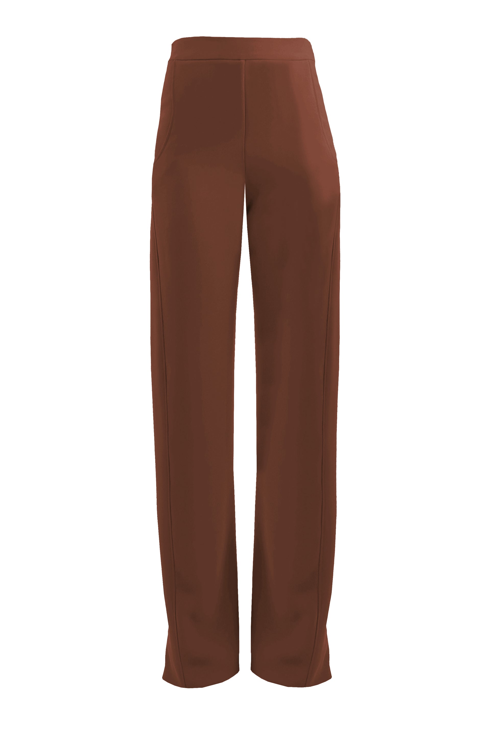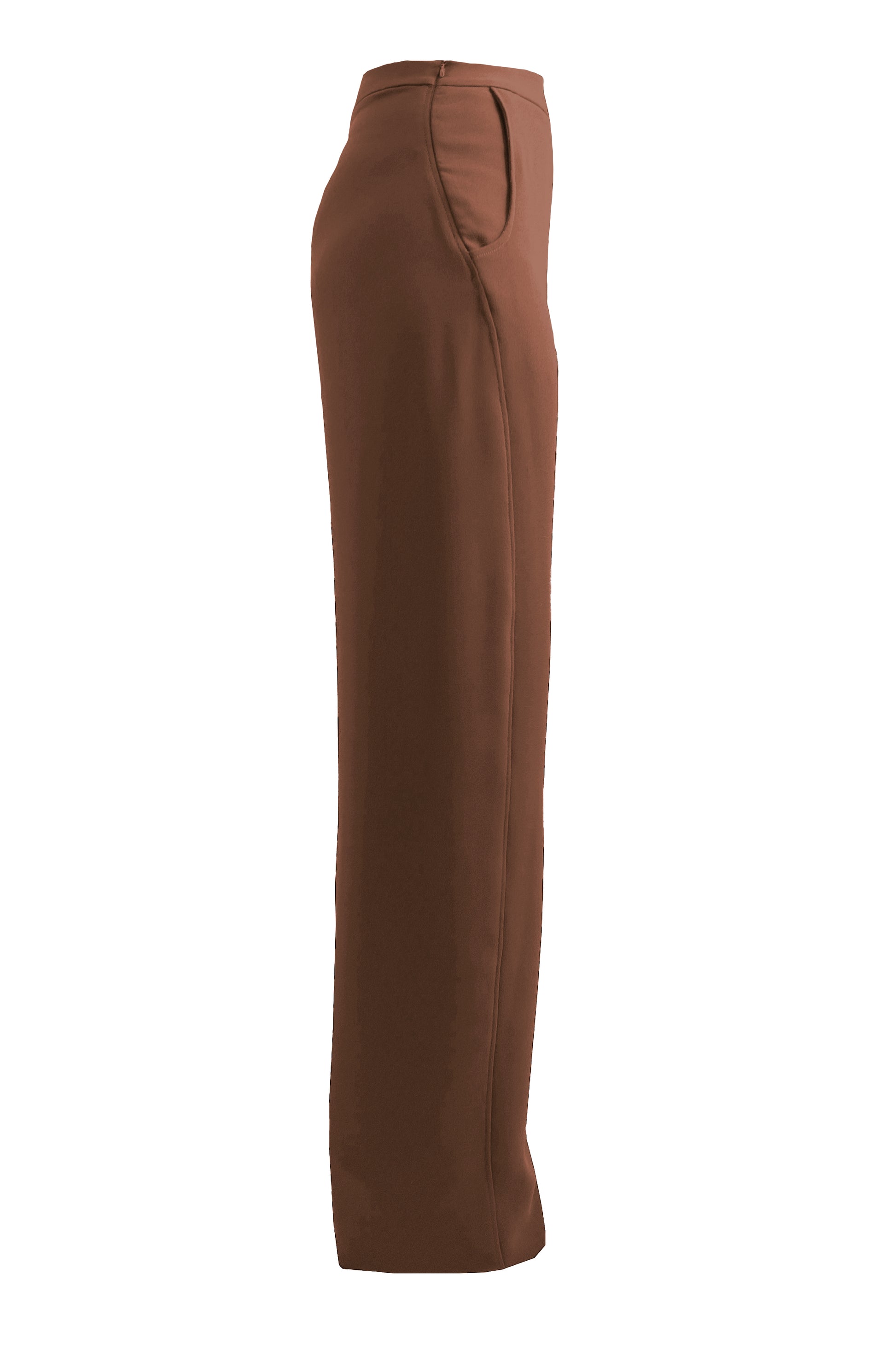 The Twist Trouser is a high waisted, elegantly cut pair of wider leg trousers with a twisted seam that narrows the body visually. These trousers feature a snugly fitted waist and hip, curved pockets at hip, and draped fit.