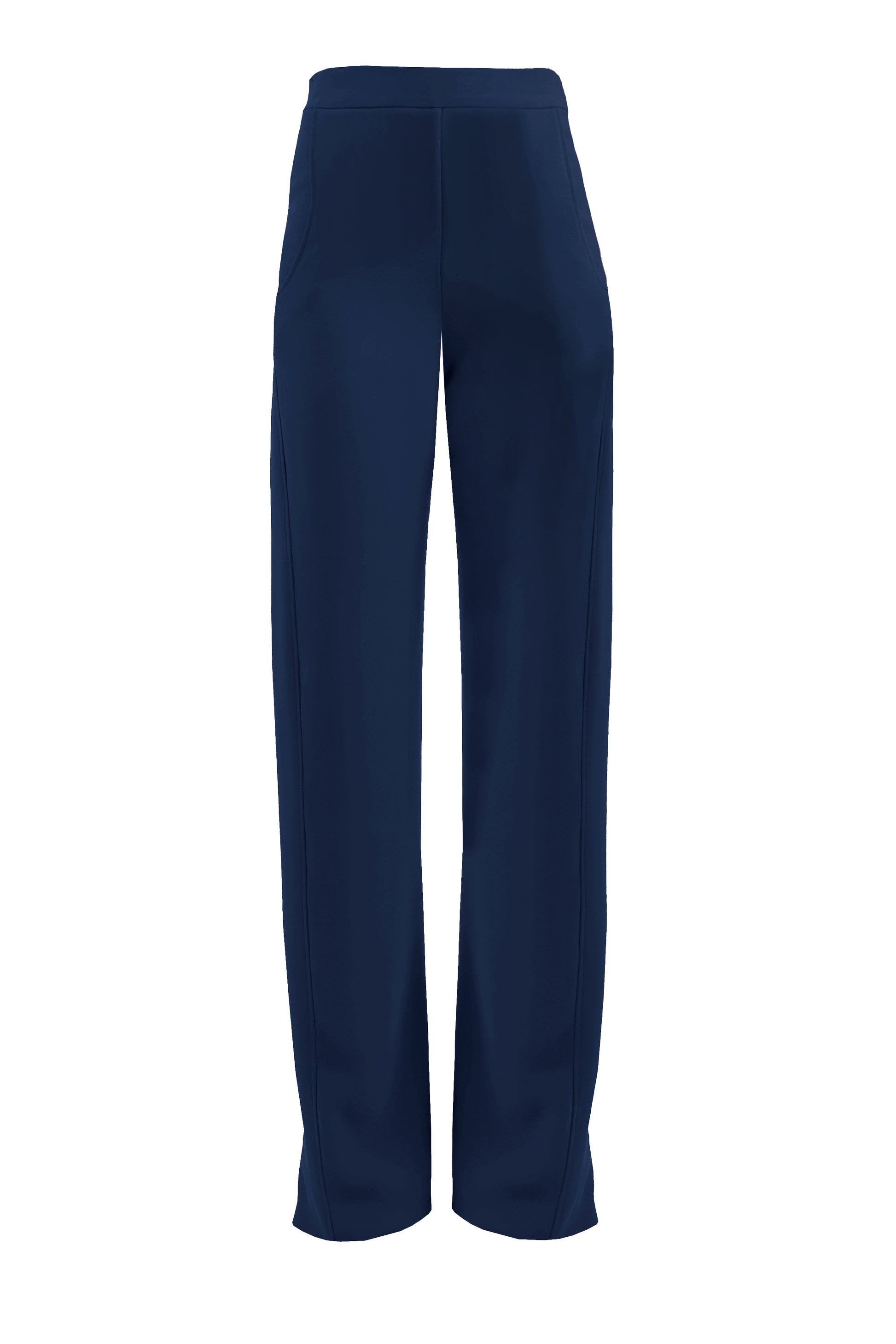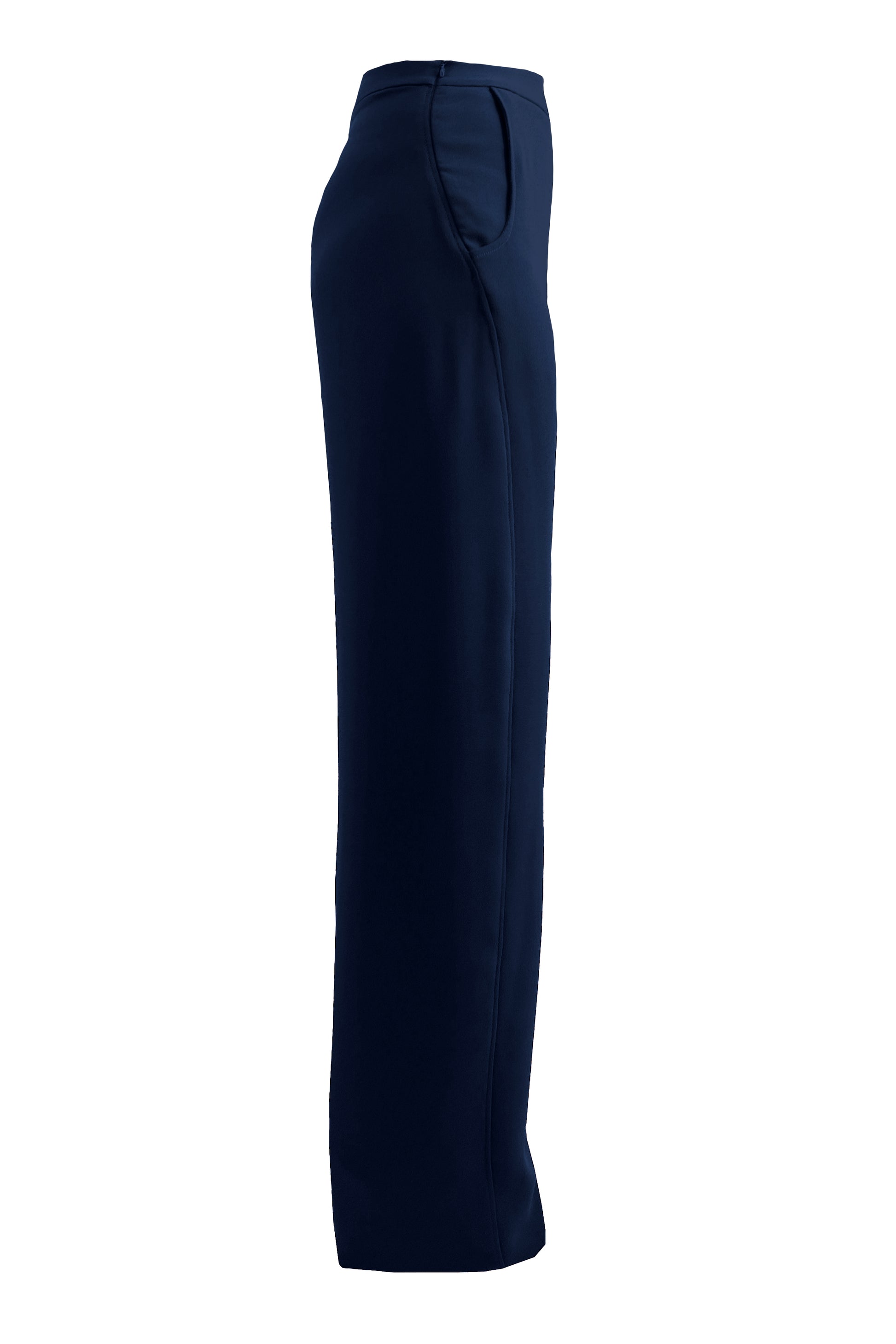 The Twist Trouser is a high waisted, elegantly cut pair of wider leg trousers with a twisted seam that narrows the body visually. These trousers feature a snugly fitted waist and hip, curved pockets at hip, and draped fit.